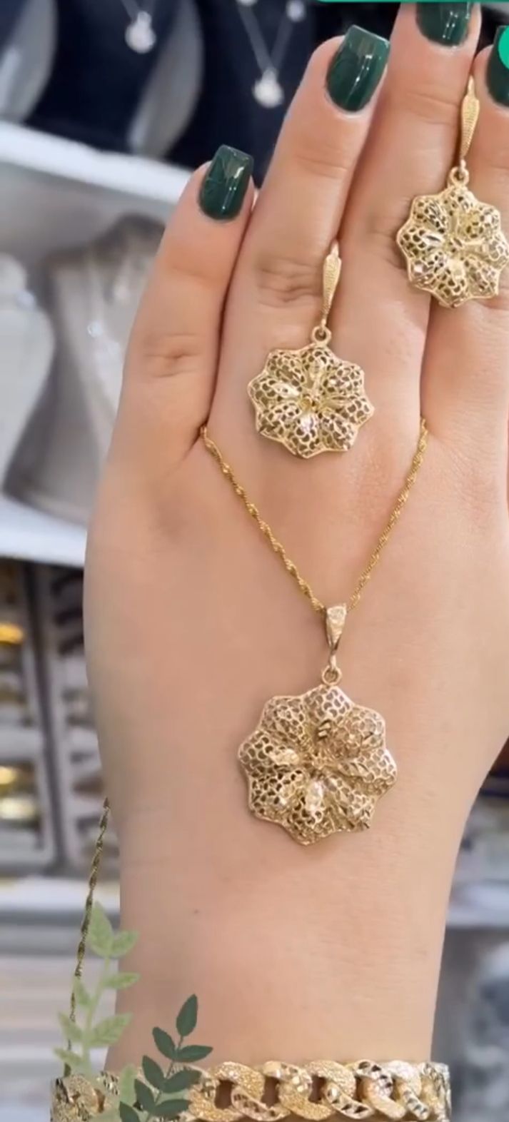 نیم ست گردنبند طلاروس طرح گل استیل
